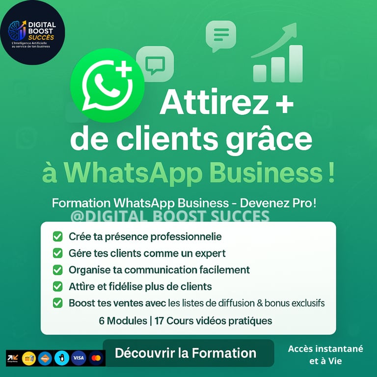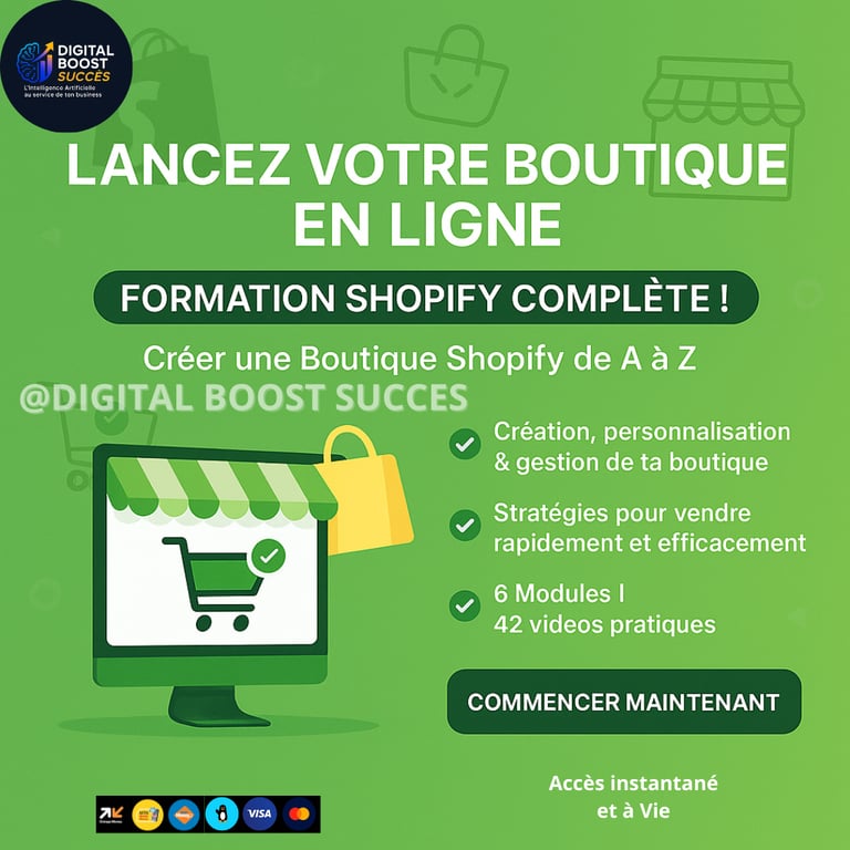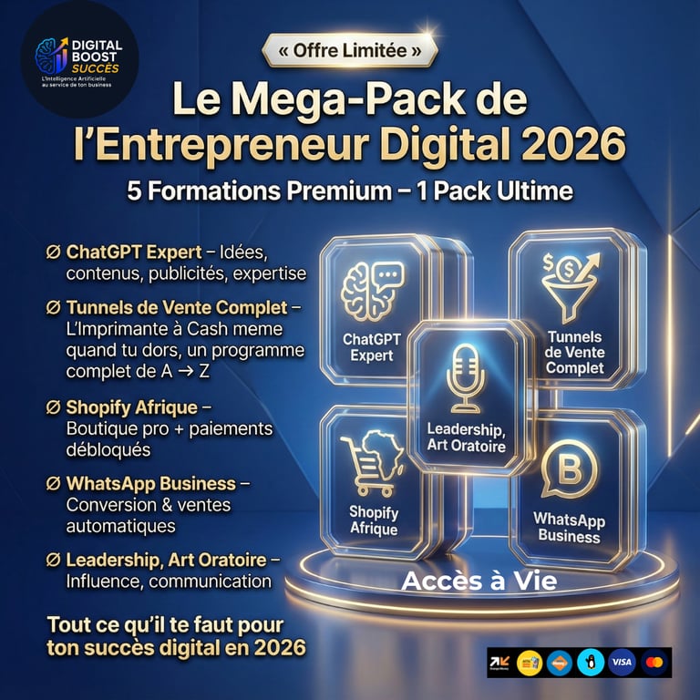 🚀 Digital Boost Succès, ta boutique 100% digitale pour propulser ton business avec l’IA et les stratégies modernes du web. Formations, eBooks, templates, outils et ressources prêts à l’emploi pour acquérir des compétences, automatiser, vendre et réussir plus vite en ligne. 🎯 Notre mission : Te faire gagner du temps, passer à l’action et atteindre tes objectifs avec des solutions simples, concrètes et puissantes.
